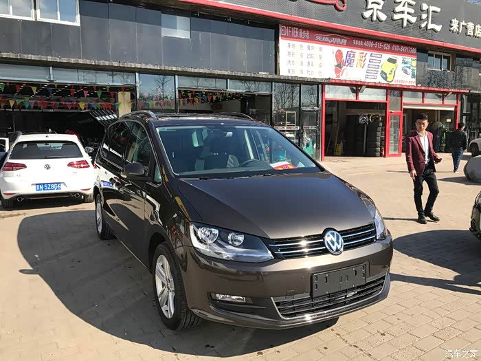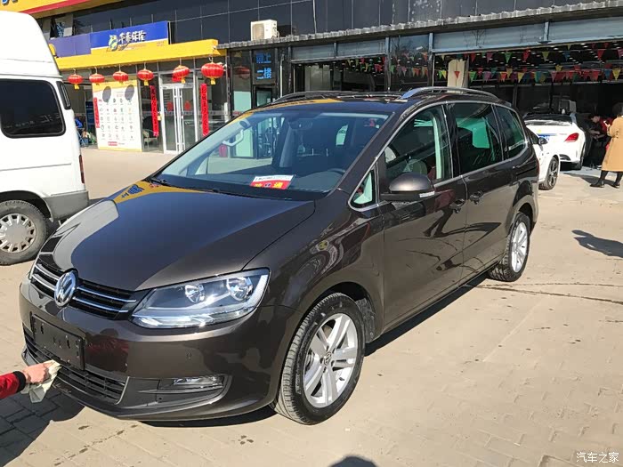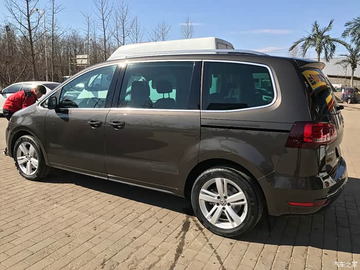 日子很快就又过了5年了,老二也出生了,每次全家出门老二都只能抱着,后备箱塞得满满的,换车也就不可避免了。我大约2年前注意到有夏朗这款车,很早也就带家人看过,机器和外观尺寸我都很喜欢,唯独觉得后排舒适性比奥德赛差,比较犹豫,后来也仔细看过了GL8、马自达8、新奥德赛、奔驰R320、丰田塞纳,日系两个差不多价位的,质感实在不合口味,奔驰R320又贵又小,GL8又大又商务,塞纳是最中意,无奈日常使用觉得还是不方便,又赶上工作不稳定,还是省点钱比较好。基本上去年年底就想好了搞夏朗了,心想也一把年纪了还是要对自己好一点,不要每次都搞性价比,一定要上尊享,老婆也赞成。但是***丝就是***丝,调研了一圈价格,销售们也说尊享保有量性价比不高,就动摇了,还是追求性价比吧,喜欢啥功能,花点钱改装改装,也不贵。于是年后寻了一圈价格,遇到一个谈得来的销售,就定下来了。棕色很快就有现车,那就棕色吧,然后就提车了。花了1200手续费做了5050,按4S要求加了6000做了一个副厂电尾,就是给人家挣钱的,我也不较真了,全下来算是还凑活。