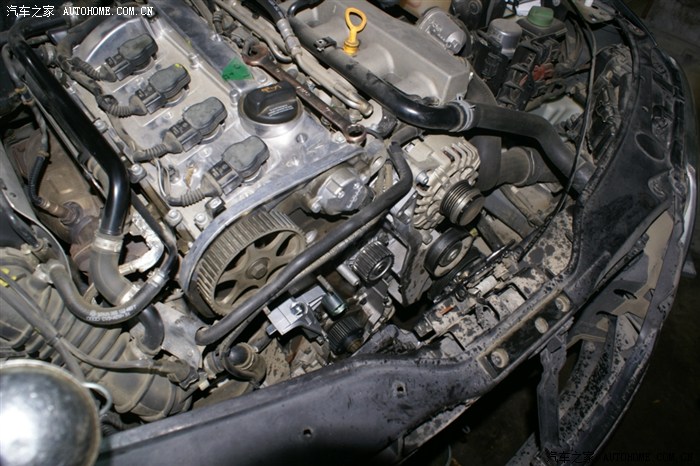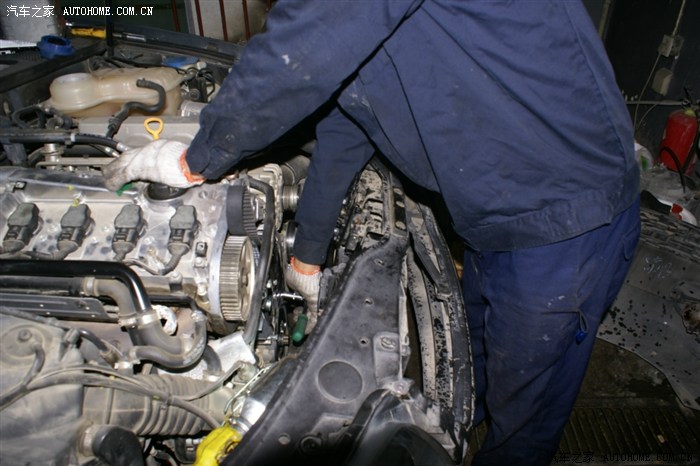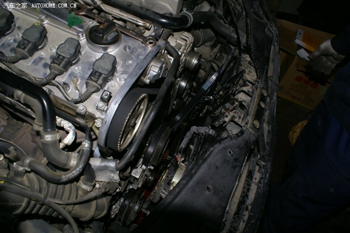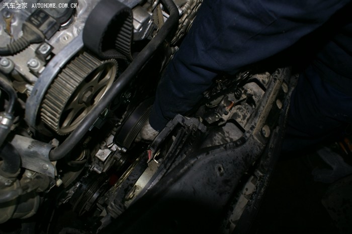 很快空调、发电机皮带轮,皮带都拆了,正时皮带舱的护板拆掉了