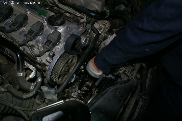 开始装皮带,很轻松的,但需要对正时