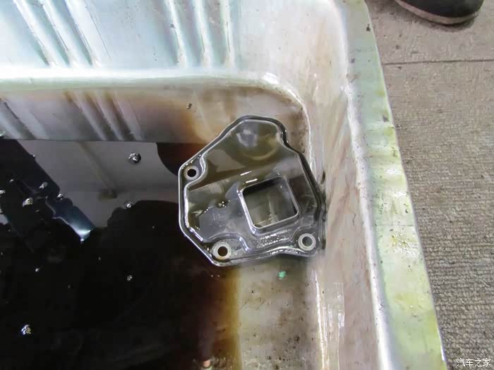 看,油很埋汰,还有油底壳和变速箱油过滤网。决定把变速箱过滤网也换新的