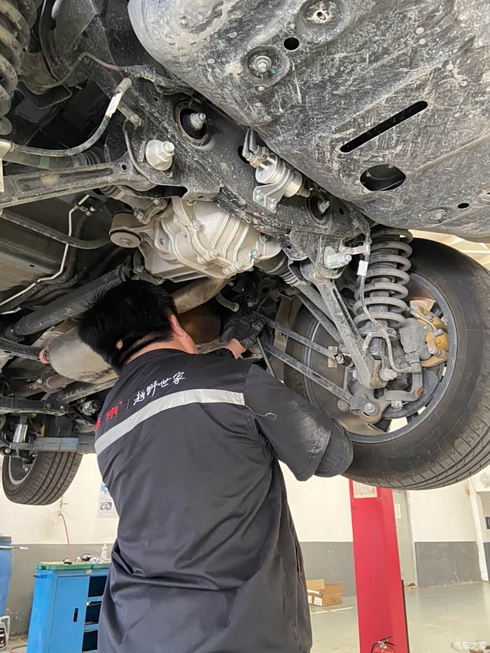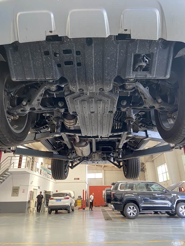 车子举升起来了,这就是越野地盘系统,非承载地盘