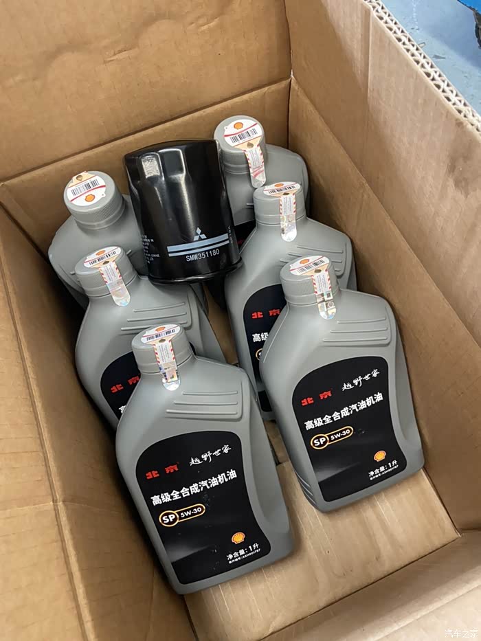 师傅领来的原厂壳牌机油和三菱滤芯,师傅说需要加6升机油