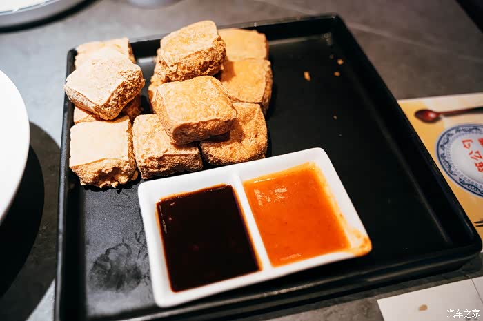 第二道菜为臭豆腐,这个是必点菜。一定要趁热吃,外酥里嫩。搭配上咸酱和辣酱,恰到好处。