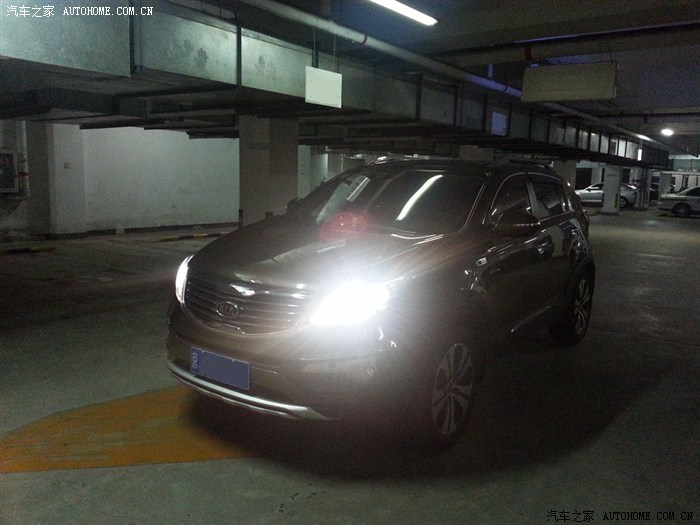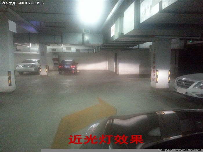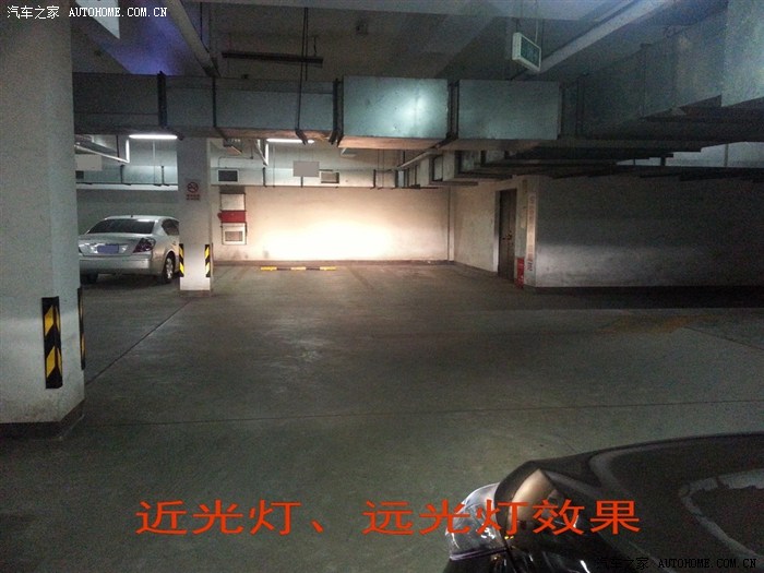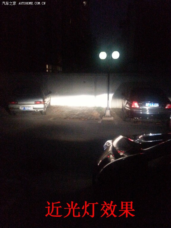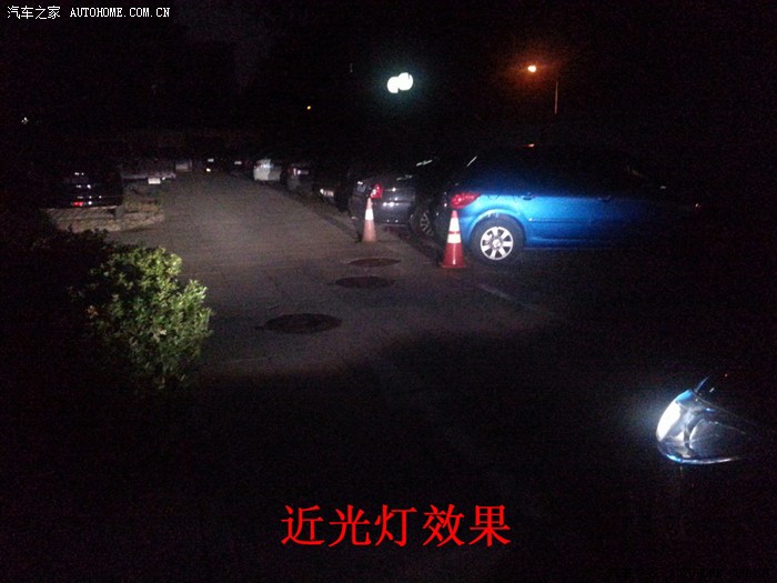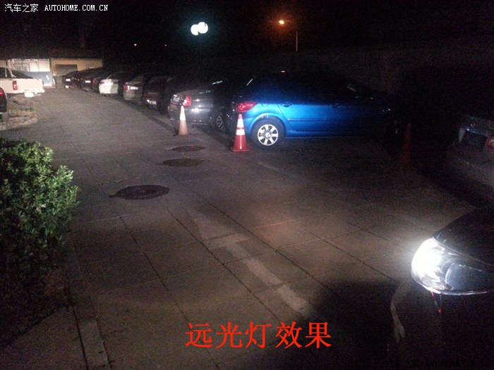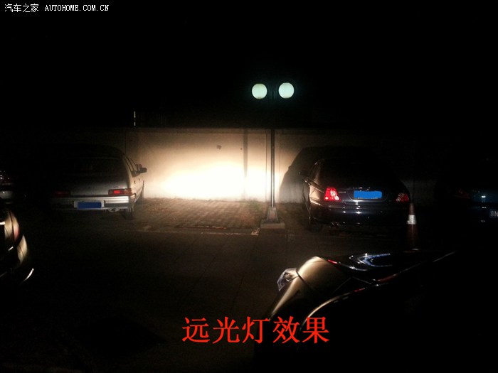 夜间灯的亮度肯定不如氙灯,不过在卤素灯里这个效果也可以了。在打开远光时是4灯同时亮,夜间手机拍照的效果不是很理想,但也能看出一点效果,由于没有原车灯的资料,故无法在这里做对比了,大家随便看看呗。