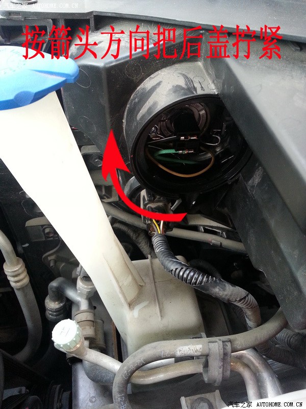 还是按近光灯的操作方法,首先拔下灯座打开弹簧卡子取出灯泡,然后把示宽灯灯座直接拔出来,再拔掉原车示宽灯灯泡,插上新的LED灯珠,把示宽灯按原位置插回去,要插紧一点,最后装上新远光灯灯泡别上弹簧卡子,盖上后盖,完成!要说明的是这个LED灯有极性,先插好后打开车灯电源确认亮不亮,要是不亮就关闭车灯电源,再把LED灯换一个方向插上即可。