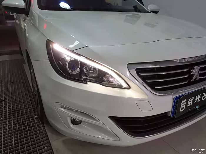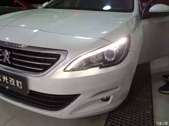 灯光涉及到行车安全,2017年9月提车后感觉原车卤素大灯太暗了(标致顶配以下全是卤素灯,真的是无力吐槽),所以就决定改灯。正好12月份赶上汽车之家的家家商城做活动,下单了阿帕5C套装,当时还是改装小白,就在原车上加的透镜改的灯。到目前为止,4200K的色温氙气灯,也觉得够用,但是期间看了越来越多车友改了308大灯总成,是真好看,特别是那对剑眉led日行灯,再看自己的车灯,越看越不好看,终于下定决心去改308大灯总成,联系武汉本地一家408改装经验丰富的改灯店,老板给出了2中方案: