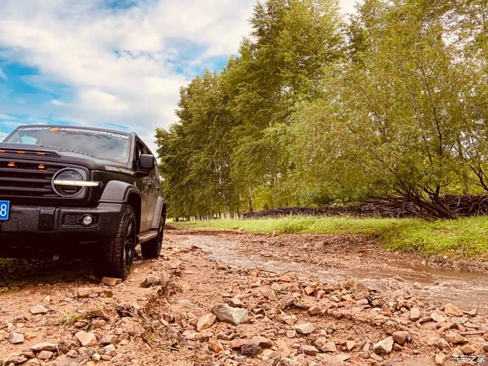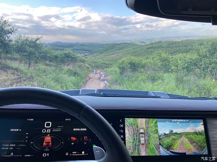 比如这种涉水路面和山路崎岖不平的时候这个底盘透视功能就体现出它的作用了!因为它不光只显示底盘正前方的实时路况还可以把整车前后左右的实时画面一并显现出来!够不够贴心!比如山路崎岖有大石头,目测视线无法企及,这时候打开这个功能,你就可以看到你轮胎的和障碍物的位置,还可以看到前后左右的多方位画面!而且画面畸变量并不大!好就算你觉得画面畸变,这也不是什么大事,因为画面上还会数字显示你车距离障碍物的距离精确到厘米!我特意找了一个雪糕桶测试过,这个测距的数字显示是真的很准确!试想一下咱们越野车车身高大,视野盲区多在越野路段有了这个神器加持你是不是信心满满!越野是要有经验的积累!但是也需要科技的加持!有了这个越野小白们,就不用手足无措的慌乱了!以下奉上我的爱车越野时候的一些靓照,以后小伙伴们还想了解什么功能我会继续给大家分享!也预祝各位朋友心想事成,早日找到自己的心目中的爱车!去寻找诗和远方