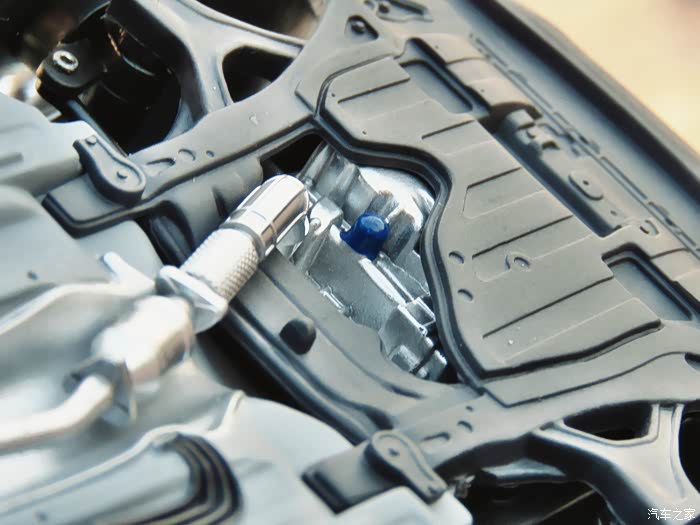 底盘部分亮点也颇多,前部的机油滤芯是一个很讨巧的小细节。