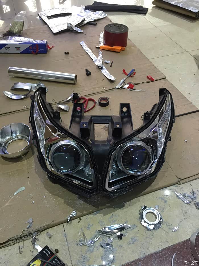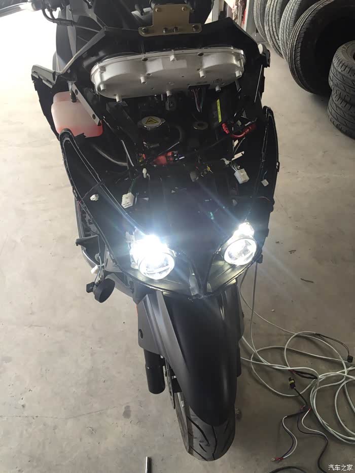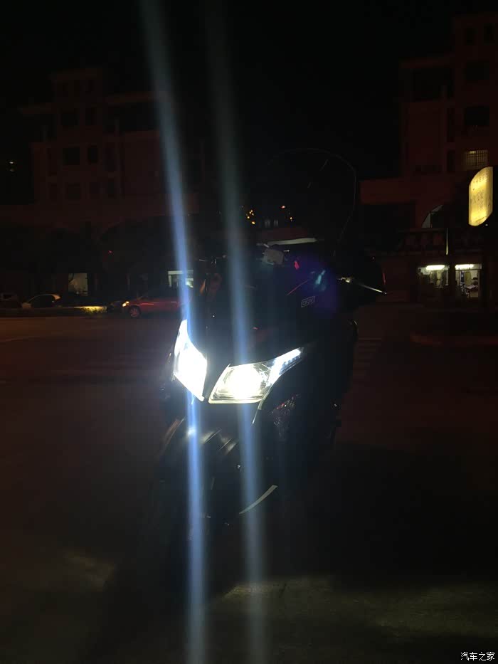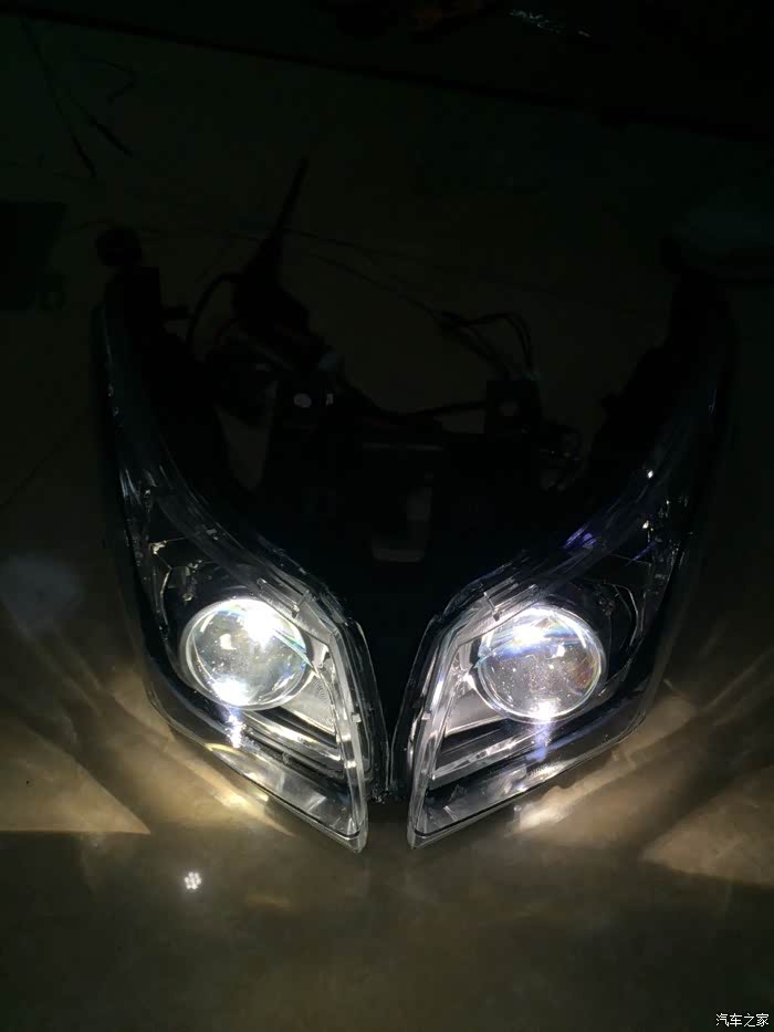 第一次改灯,由于改灯的店家没弄过摩托车,加上当时我是把灯拆了直接带到外地改的,所以效果不佳,用了一段时间后无法忍受,于是直接驱车到本地的一家店,效果很满意,既满足了夜间开车效果,增加安全性,同时近光不会对对面车增添烦恼,远光也可以有效对付“远光狗”