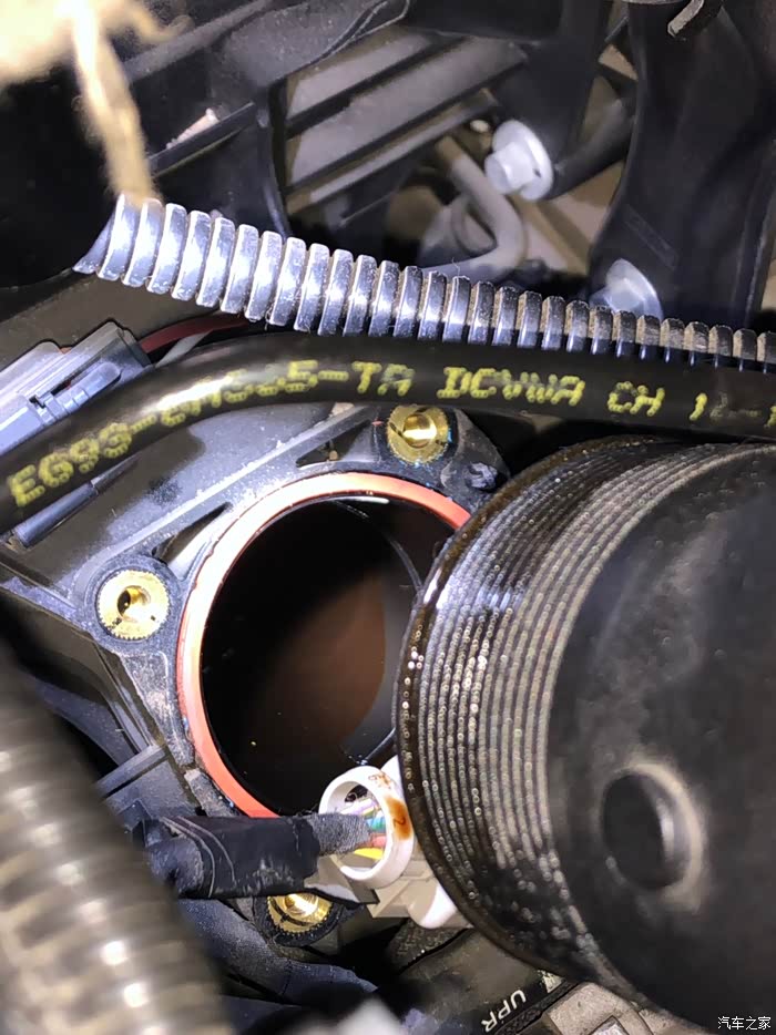 这个油气分离器也是多了一个孔,然后用PCV通风管把它和进气歧管连起来