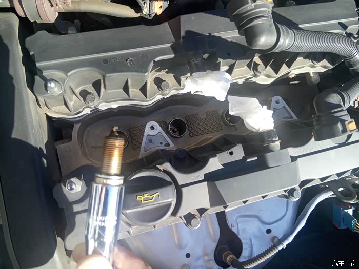 车跑了快3万公里了。看保养手册到了该更换火花塞的时候了。决定自己动手试试。顺便也清洗下节气门,连带空调滤芯一起更换。不废话了。开始拆。其实更换火花塞挺简单的。以前自己动手换过单缸的,四个缸的还是头一次更换。道理是一样的。关键是拧紧的力度。拆下什么样,拧紧的力度也是那样。看自己掌握了。节气门拆下来很脏。需要用清洗剂清洗。然后擦干净。顺带可以直接换空气滤芯。可是我的前几天刚换完。等等下次换机油的时候在一起换吧。空调滤芯实在是不想打扫了。干脆直接换掉。节气门拆下来需要先拆掉进气系统。节气门三个螺丝固定在发动机上。需要专用的工具。由于自己施工所以没有拍照,下面直接看图说话。希望对想要自己给车做保养的车友有所帮助。希望版主给加精华,谢谢。