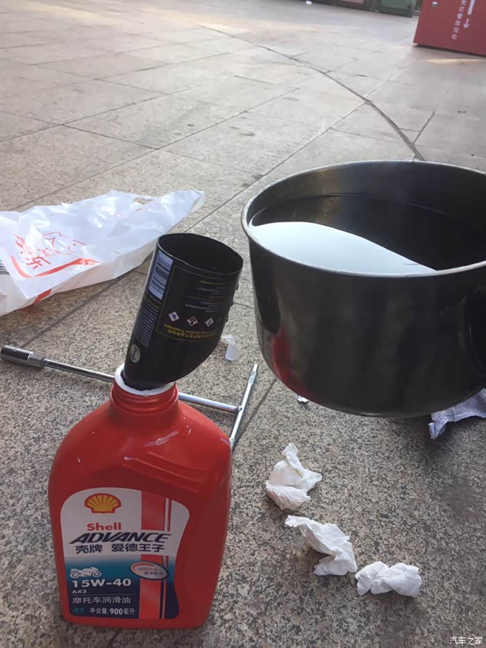 上次的桶没扔废物利用!最后放摩托车修理铺里