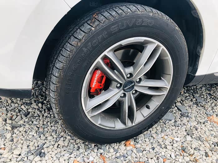 给卡钳喷了个红色的漆 看起来要好看些 就是轮毂要是换成19款的就好了 我的是18款 买早了。。