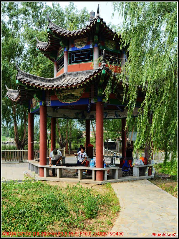 先前的探路发现我们2013年露营的地方正在整修,这次应该是无法再露营了,沿途也有几处树林看上去不错,也是个不错的选择。但这清水河两岸都是村庄,当年在这露营就是经常有人打扰,所以这次想,与其在这附近找人少的地方不容易,就找舒服的地方露营,于是就找了这么个地方,有这么个亭子,连天幕都可以省得搭了!