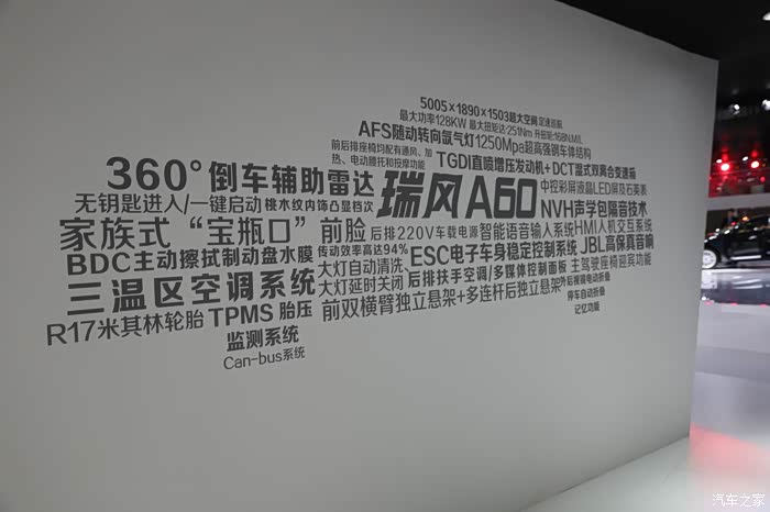 一面白色的墙上,瑞风A60的各种先进的功能和特点