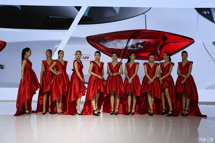 现场江淮的展台上车模林立,红色的礼服很拉风啊,有中国范