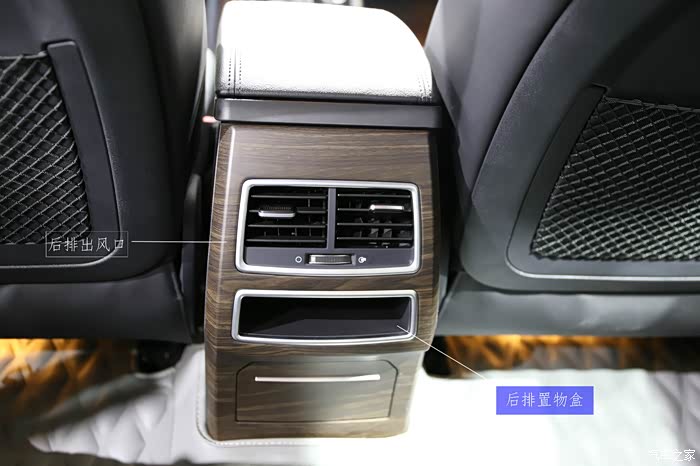 后排的中央扶手看上去大气稳重