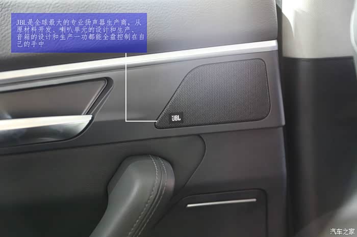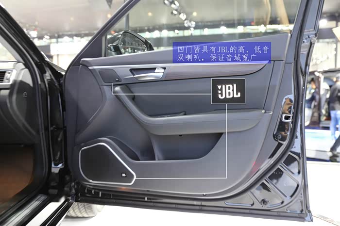 下面我们来看看所谓的音乐空间,其实好听的音乐除了喇叭重要外,对空间的私密性和隔音性也很重要。A60采用了JBL品牌做为车身的喇叭,全车共有十二个喇叭,分别为高低音域。其实对于隔音,做为中级的商务车来讲应该要比普通的车强很多。实际在A60上,隔音的效果非常不错,进入车内关上四门,车外展厅里嘈杂的音乐和人声基本听不到。这时候让在场的工作人员用蓝牙链接手机分别播放了纯音乐和人声的歌曲。