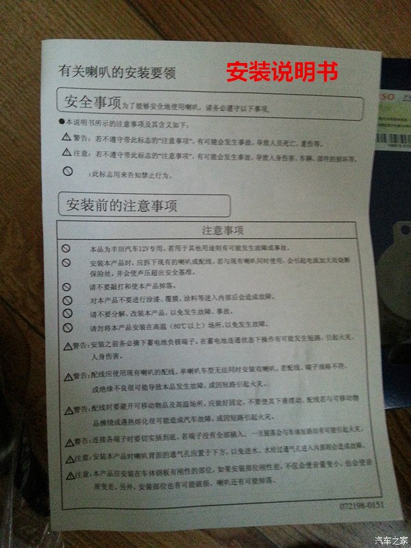 提车几个月了,几千公里的长途,各种超车,鸣笛,各种市区道路,各种行人挡道,鸣笛后,路人会回头嘲笑一番,然后继续我行我素挡在你车前慢慢行动,受不鸟、受不鸟,不让道就算了,我忍!但是每当看到被人嘲笑的情景就更加的受不鸟,抓狂之下订购了传说质量和效果较好的蜗牛喇叭,到货后立马自己动手更换,效果那是杠杠滴,往下看,最后还给你附上原车喇叭与蜗牛喇叭的对比声音(帖子中如何将录音传上来还没找到这个功能,稍后补发,汗。“补发的喇叭声音对比,下载自己听。