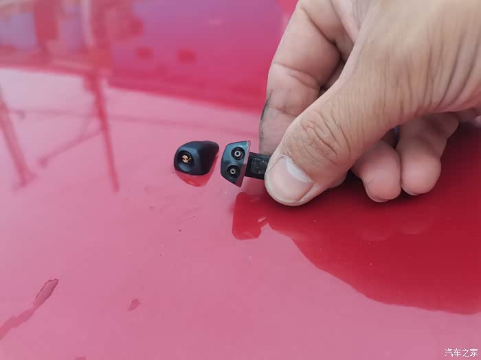 原车雨刮喷水嘴有一个出水不好,看着媳妇新车是扇形喷水嘴,效果很好,所以也觉得更换扇形喷水嘴,网上找了几家对比了一下,有几家卖几块钱一对的,都是塑料螺母固定的,斜垫片还需要调角度,原车是卡扣的,找到一家23一对的,让老板发了实物图,发现做工挺好的,一点毛边都没有,几块钱的全是毛边,做工粗糙,今天拿到后就立马更换了,打开发动机仓,需要翘开隔热棉的三个卡扣,用尖嘴钳夹住喷水嘴的卡子,往上一推就下来了,然后合上机盖从上面拔掉喷水嘴,换上扇形喷水嘴,再原位固定好,acc通电不需要发动就行,打开雨刮试一下喷水高度,用一字螺丝刀调节好高度就行了。很简单。