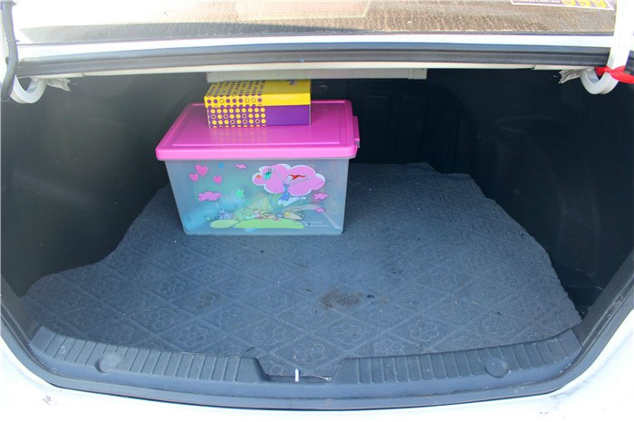 后备箱垫子是我在大市场里剪了一块儿地毯,就是宾馆用的那种地毯剪了一块儿,60块钱,然后把原厂的后备箱的盖板掀一来照着剪就出来了,不过要分一下正反面,吸灰、好洗,挺好使,主要是不喜欢那种后备箱垫的塑料味儿,选的是这个种地毯式的