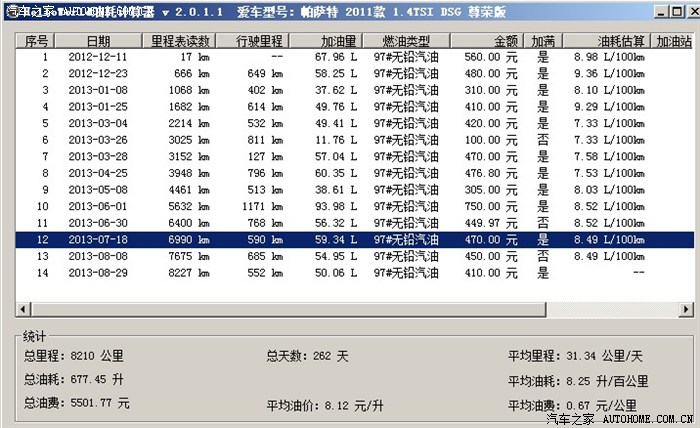 上面是我开1.4T以来的加油与公里数记录。(基本市区道路+高架,高速相对不多)2013.6.1加了93L是因为把两次加的一起加进去记录的了。这车一般加一次市区 可以开700公里左右。如果高架多或高速多可以800左右。我开的话20天左右加一次,基本可以躲过一个油价升的过程,现在15天涨跌一次,所以有时在涨价前去加点。