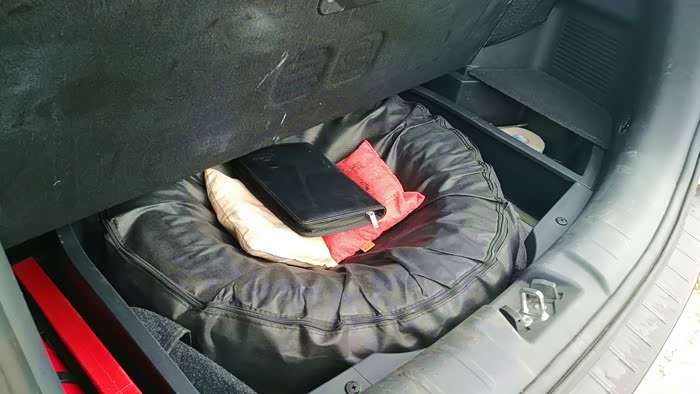 这个就是长安CS75后备箱的备胎了,放在后备箱的下面,不占空间。