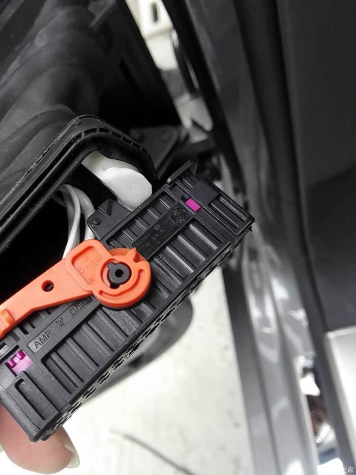 这里又是内藏玄机,原来在B柱里有一组线排接线盒,后门上的摇窗机、喇叭、门灯等电器都是连线到这里,再通过接线盒对接到总线网关