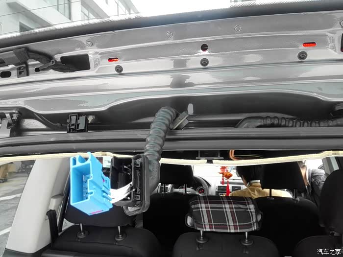 掀开顶棚,将视频线从这里引向中控台