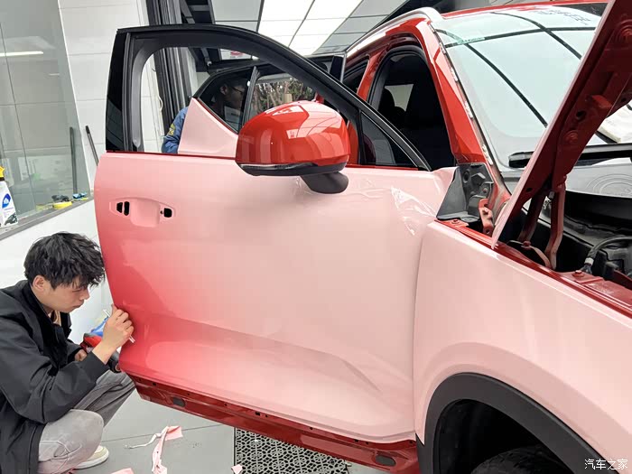 当改色完成,师傅把车开到我面前时,我简直不敢相信自己的眼睛。原本的珊瑚红已经完全不见,取而代之的是那梦幻般的羞羞粉。车身在阳光下闪耀着柔和的粉色光芒,仿佛给车子披上了一层浪漫的纱衣。