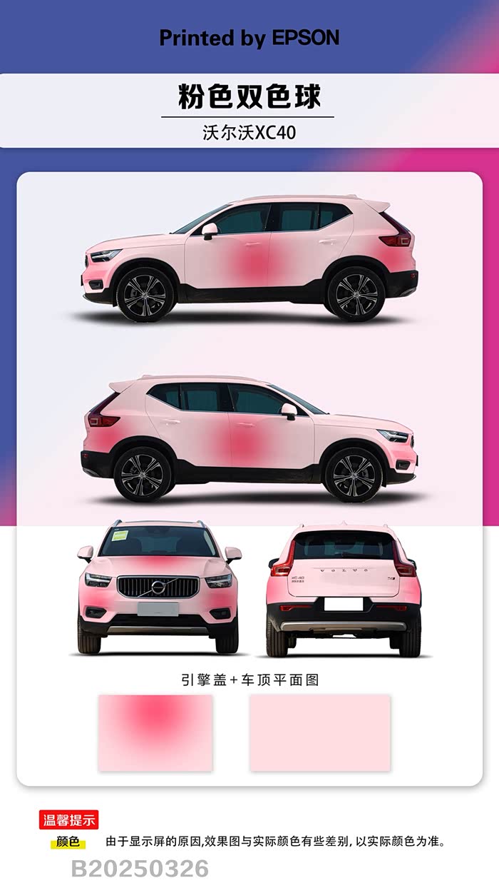 在众多颜色中挑选“羞羞粉”时,我也有过犹豫。粉色通常给人甜美、柔和的感觉,而汽车一般会选择更硬朗、大气的颜色。我担心改成羞羞粉后会显得过于女性化,不够稳重。可当我在改色店看到那种粉粉嫩嫩却又不失质感的颜色样本时,我被深深吸引了。想象着我的 XC40 换上这身新衣,仿佛能看到它在街头成为一道独特风景线的模样,所有的顾虑都烟消云散,我坚定了改色的决心。