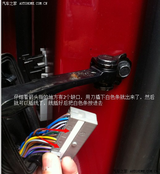 首先把正驾驶门A柱接线盒打开,加装过后排喇叭的同学都知道。这里已经预留了高配接口