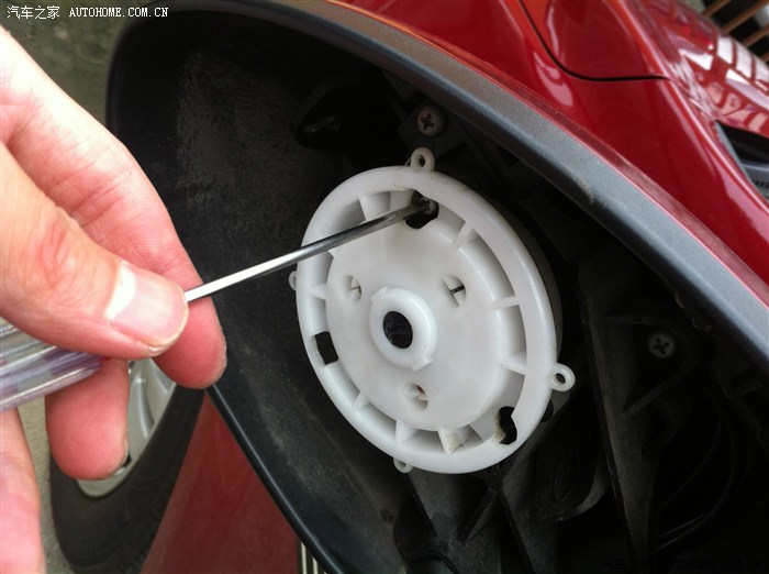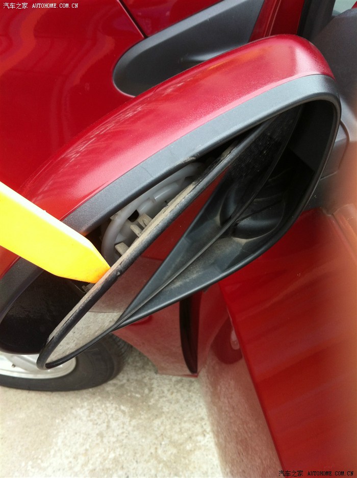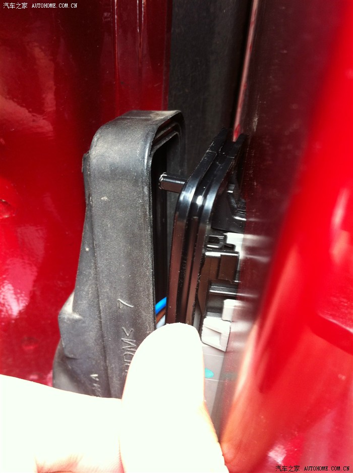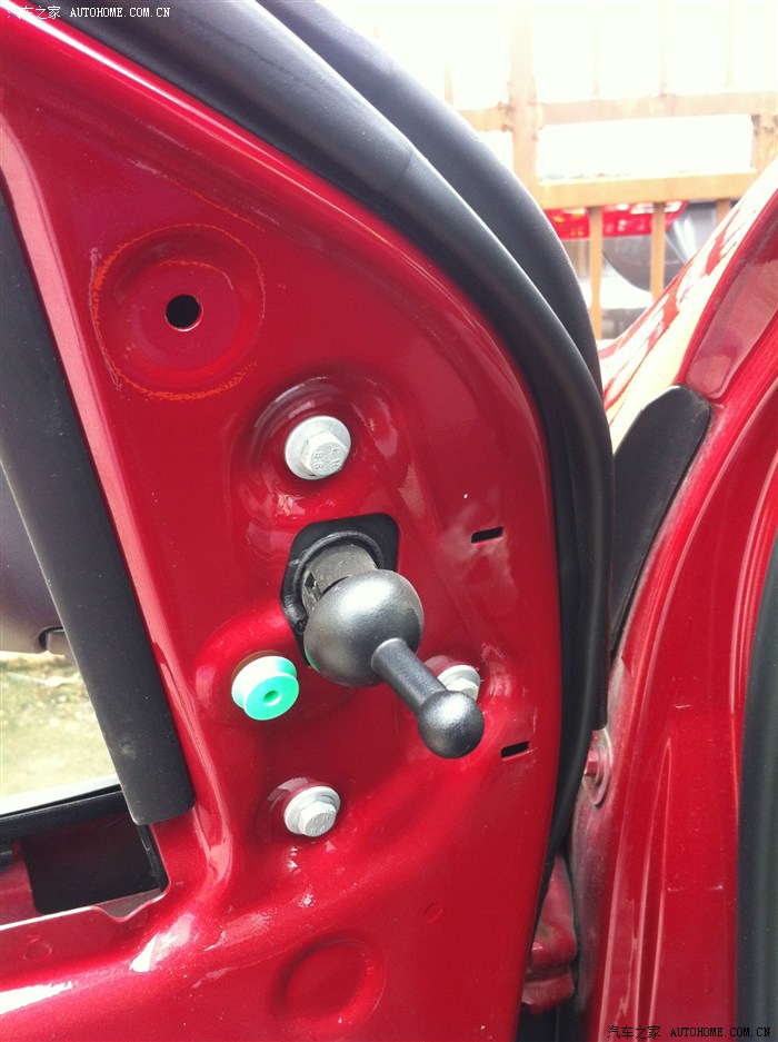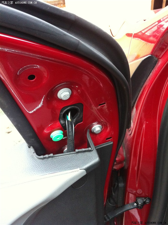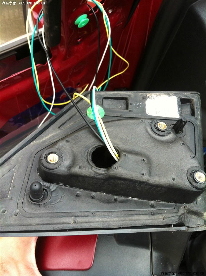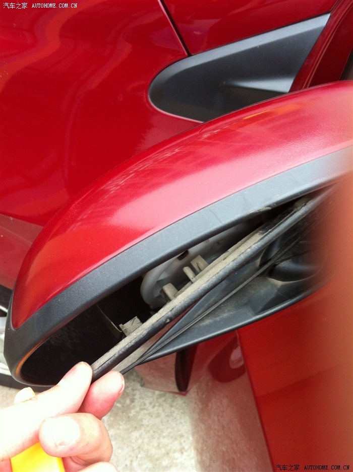后视镜拿下的时候从缝隙看下,有一个帽子是增加后视镜的阻尼,别让塞子掉门板里了。