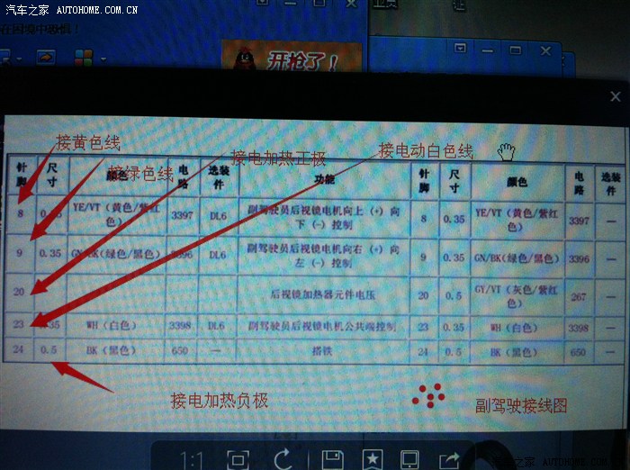 同样的方法电加热负极线图上要求插入24号孔,但是24号也有线了,不想破坏原车线路,也是接在了喇叭螺丝上