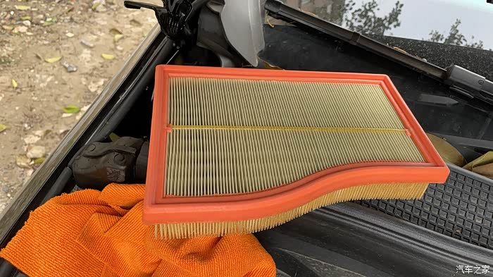 因为很多管子和线连着,不能完全打开,只能打开一条缝隙,把原厂的空滤抽出来,再把KN的塞进去。