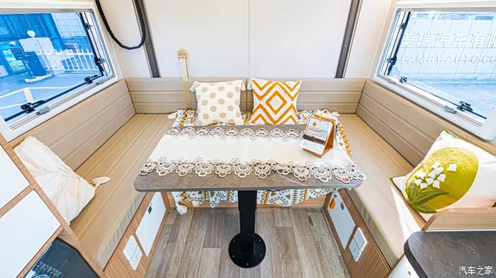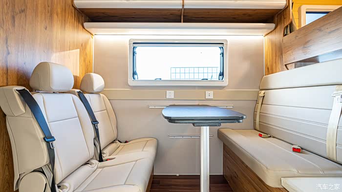 比亚迪T5DM底盘“头号玩家”房车:车身尺寸5995mm(长)×2380mm(宽)×3330mm(高),轴距3360mm。底盘自带增程式动力系统,由1.5TDM混动专用汽油发动机与增程器协同工作。生活区含额头床、会客区等,核载6人。水电配置有双电池系统+双逆变系统+1000W单晶硅太阳能板,净水箱容积500L(含50L热水箱),灰水箱容量100L。