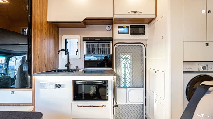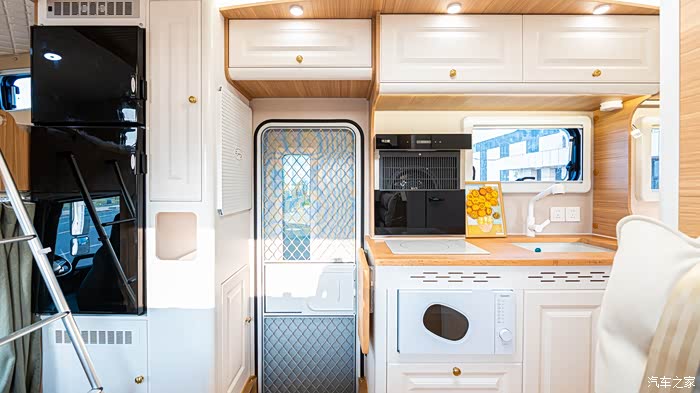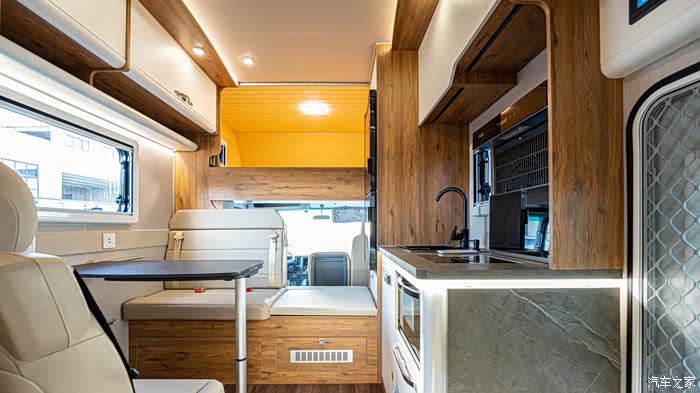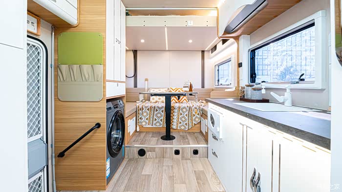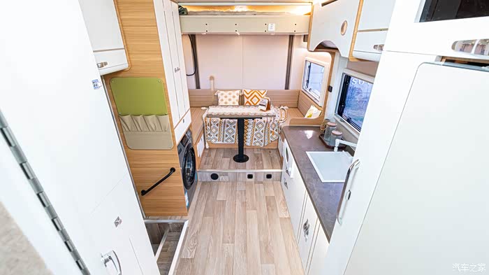 五十铃700P房车:搭载5.27升高压共轨柴油发动机,配美国原装进口6AT变速箱。整车外观尺寸5995*2410*3348mm,总质量7450kg,轴距3360mm。内饰采用经典后置横床布局,前额床尺寸2100*1500mm,后横床尺寸2100*1220mm,卡座床尺寸1900*900mm。家电配置有145L双开门冰箱、微波炉、8kg滚筒洗衣机等。生活区匹配48V电力系统,标配14.3度且采用A品磷酸铁锂电池,双逆变器和1100瓦单晶硅太阳能。
