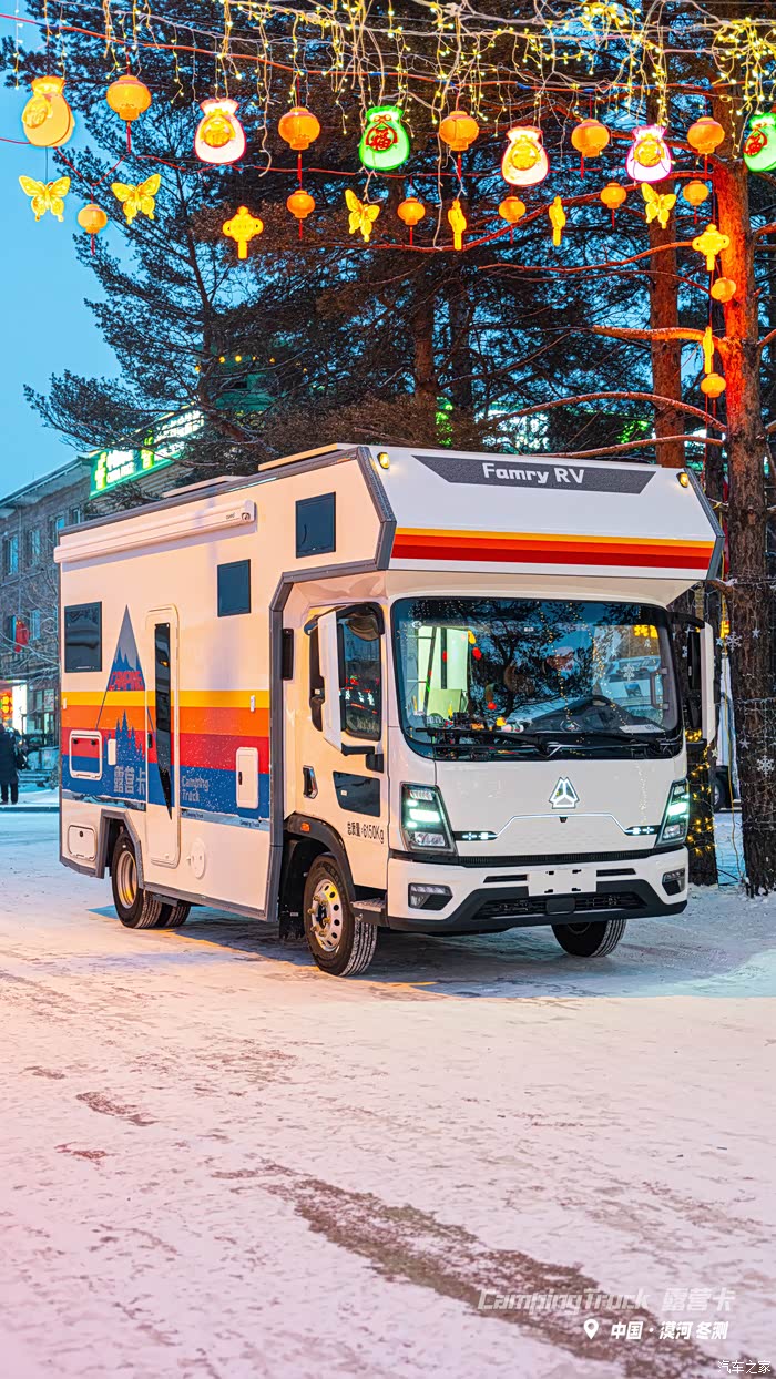 重汽豪沃系列底盘,则以卓越的承载能力和稳定的性能,为您的旅途保驾护航,应对各种复杂路况;由其打造的露营卡系列房车都经过极寒测试,无论是底盘表现(回看本公众号往期的两篇介绍)还是上装的保暖成效,作为漠河出行测试的工作人员,我们还是十分满意它的整体表现!