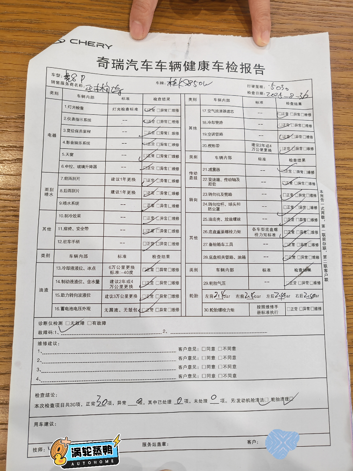 真心说,首保别怕麻烦,选对品牌比啥都强。这次奇瑞首保我给满分,以后我就是妥妥的奇瑞粉,也盼着我的车越开越顺!
