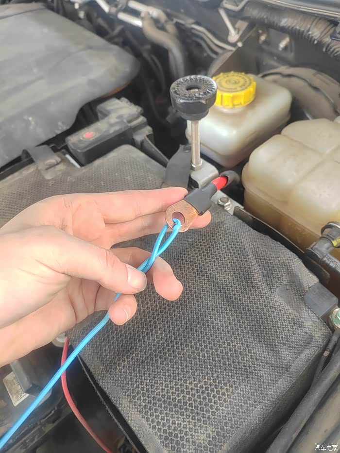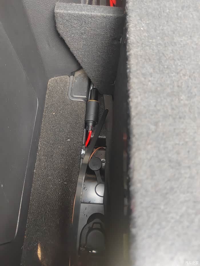 2,重点说走线,网上查了半天,两种方案。一种走大梁下方,从后备箱通气孔穿入,无损。但线比较长,另外再底盘要怕行驶的时候磕碰到,另一种,就是从防火墙皮碗穿入,远航老哥走的是副驾驶,穿入两根线连接主电瓶的线,因为他的电瓶在副驾驶。我呢,跟厂家确认,行车充电器负极可以就近搭铁,考虑线路最短,损耗小,最终锁定方案,主驾皮碗穿一根正极线接主电瓶正极,走一根线绰绰有余。用跟铁丝拧上线束铜鼻子,从驾驶室里朝外穿,很容易穿出来,非常容易。