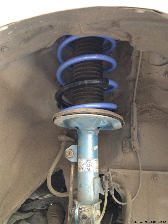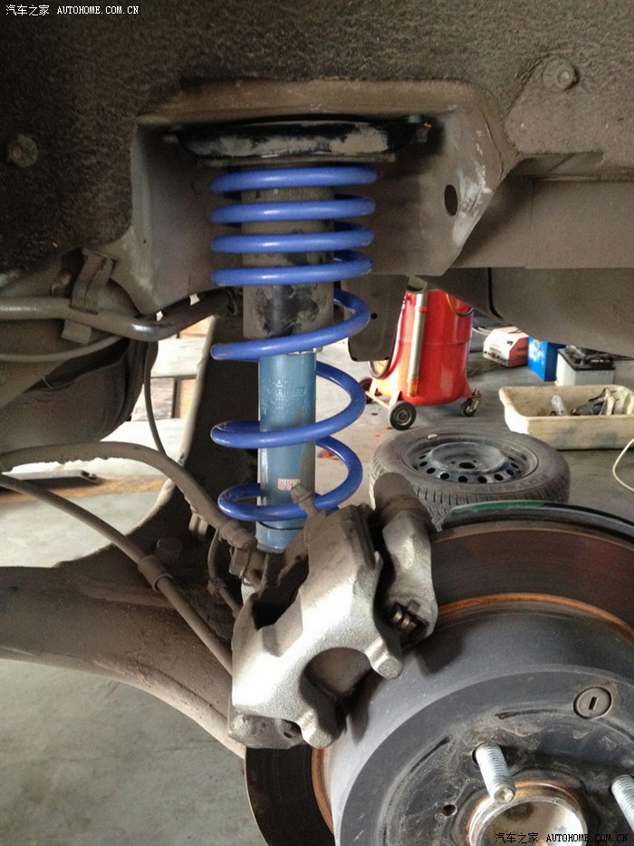 换KYB蓝筒减震器和KYB弹簧已近三个月了,效果应该说是有很大的提升。但是还是觉得车身高,前天换上了TS短弹簧。先上照片。