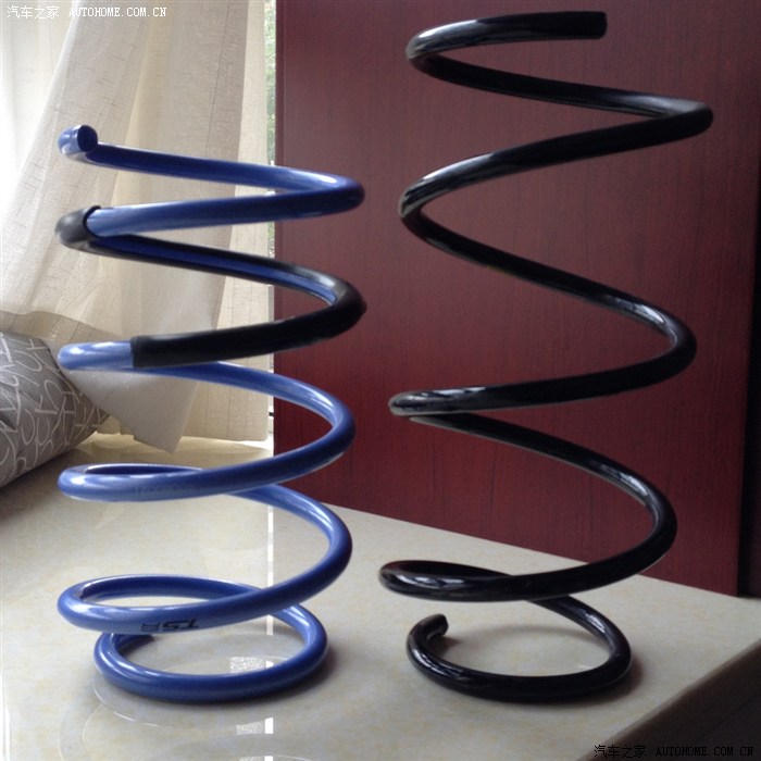 TS前短弹簧与花冠原装前弹簧。自然长度:TS长293mm,原装长349mm