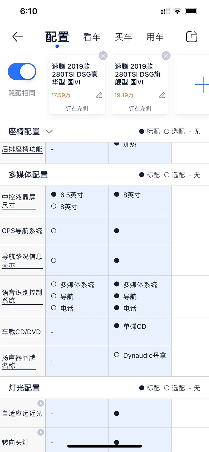 请问各位车友,速腾选装的丹拿有功放吗?还是只是喇叭的区别?速腾哪个配置开始用的DQ381的变速箱,看38号的测评说是湿的,结果论坛说是干的,把我搞糊涂了。目前在速腾和途安还有探歌里面选择。已经知道探歌四驱是用得381变速箱。还有问下各位厂家金融目前多少钱免利息?
