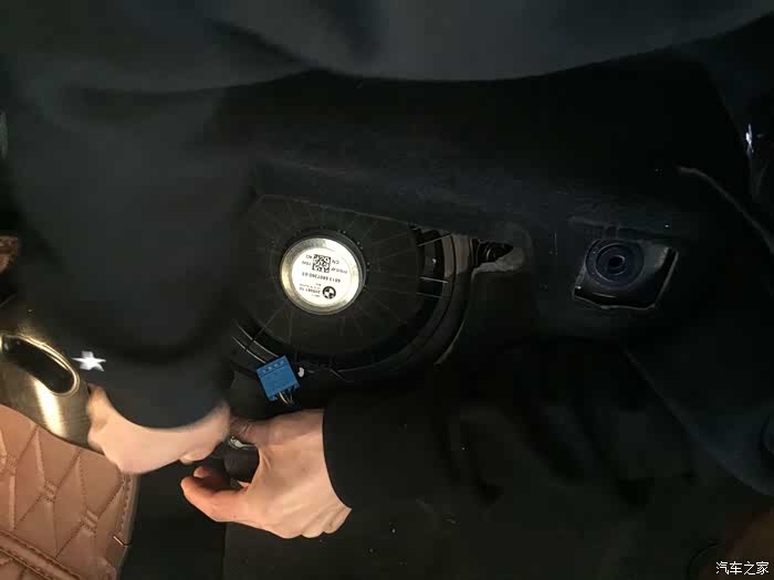 低音位置在座椅下,底下有螺丝,卸掉螺丝,不需要拆下座椅,底下低音都有预留位置。