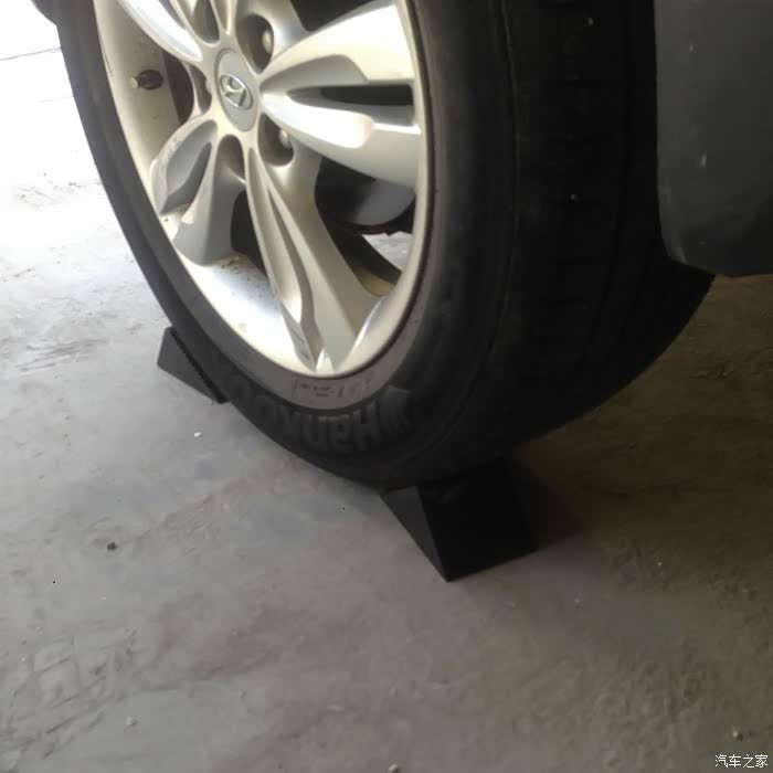 千斤顶顶升之前,一定要在另外2轮上加挡车止退器。没有专门的用砖头木料都行,只要卡住轮胎不动就行。