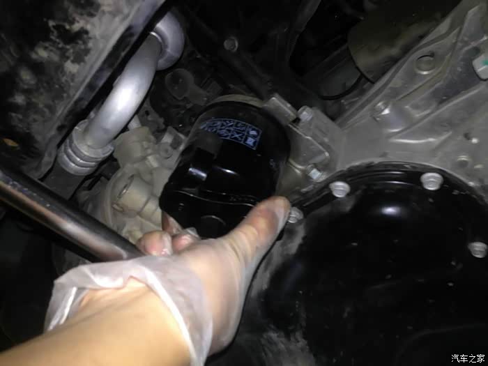 机滤扳手拧松机滤,上次就徒手拧紧,在加了半圈。所以不费劲就松动了,再手拧。