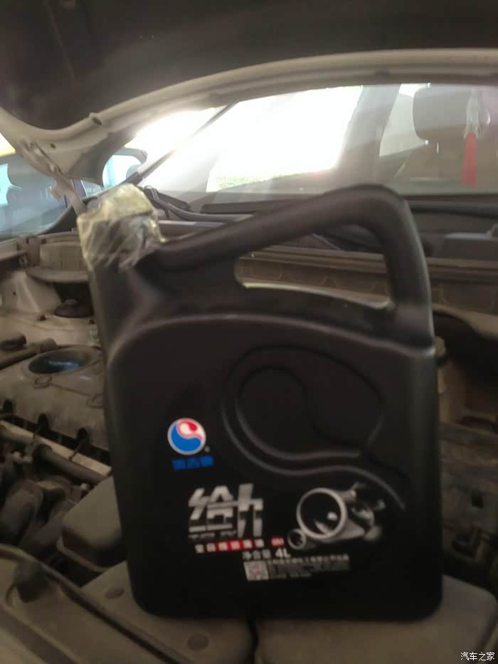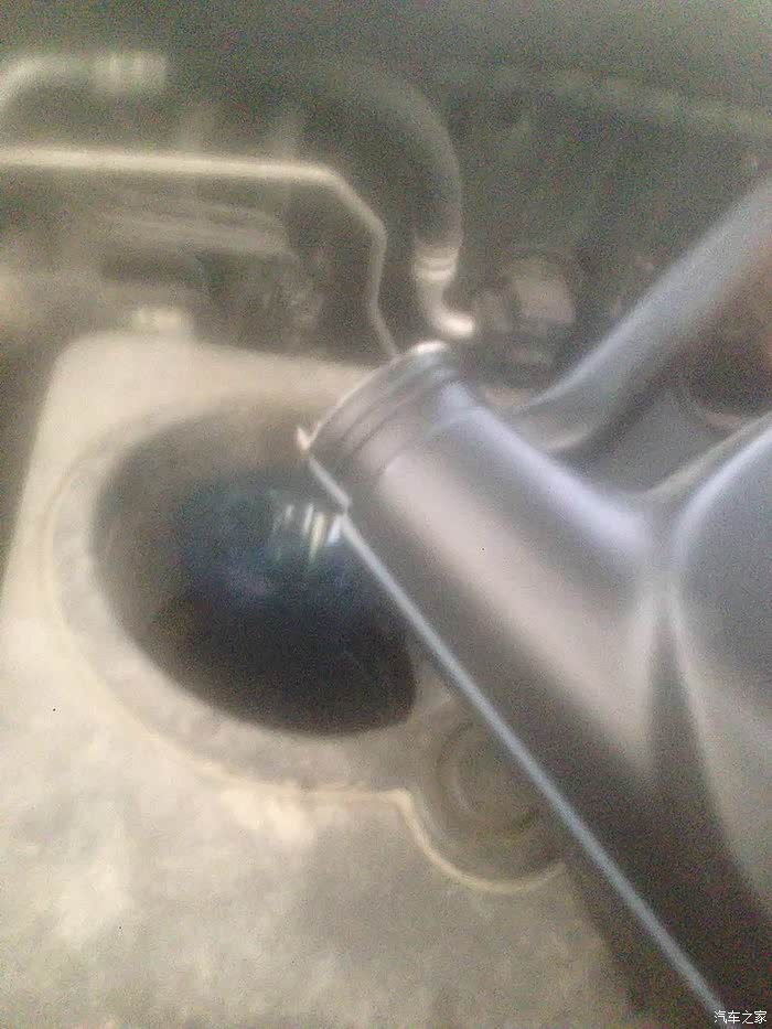 换油可不常干,稳妥些还是要个漏斗的,饮料瓶剪一个。4升基本全满上,就留个底。大概3.8升
