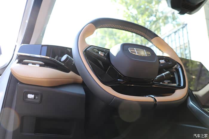 除了外观,这车的内饰也是我比较喜欢的一部分,车内的色调是这种浅棕色,看起来特别的细腻显高级,车内的整体布局很简洁且智能化,仪表和中控各有一块大屏,功能很是全面而且显示清晰,尤其是中间的这块竖置中控大屏,就像一块平板,不仅上面有很多使用功能,车里面的设计也可以在这块屏幕上操作,它是采用吉利自主研发的银河OS系统,车机的芯片也是高通骁龙的,用着超顺滑和流畅,而且还能语音进行操作,日常开着车像导航、音乐、空调等常用功能都能进行语音识别,很是方便。