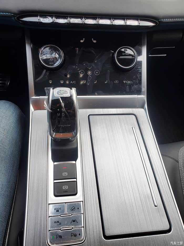 吐槽一下:下方图片中档杆位置的功能按键区面板特别容易刮花,没留神自动泊车按键已经有2道划痕,新车啊,这个心疼。小技巧:用手机贴膜剪成按键形状贴上去,很完美。