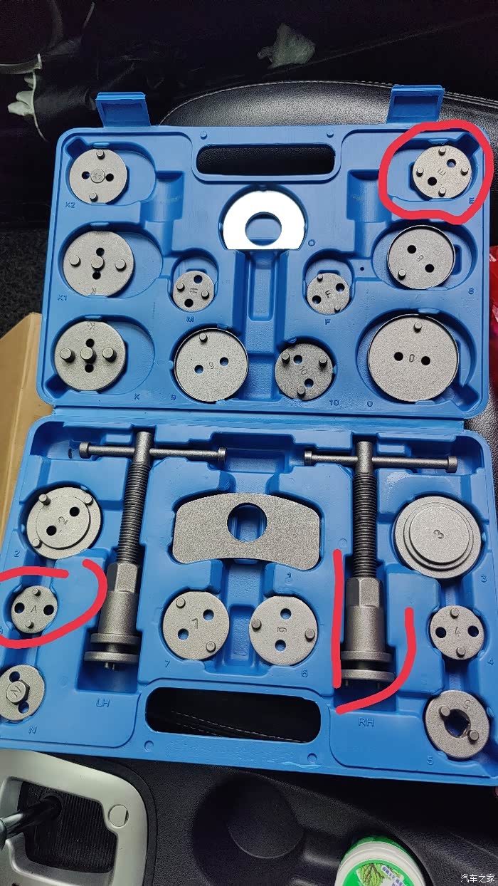 主要工具:分泵回位工具,只要正牙的 顺时针的。用螺丝刀是压不回去的,用尖嘴钳没没那力气。